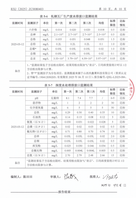 2025年4月份水污染物自行监测